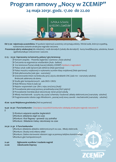 Wszystkich zainteresowanych i wahających się zapraszamy do zapoznania się z naszą ofertą. Będziecie mieli możliwość zrobić to 24 maja podczas Nocy w ZCEMiP, ale także w informatorze na stronie naboru elektronicznego. Czekamy na Wasze podania.