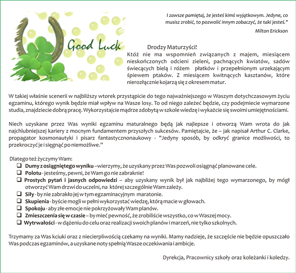 Drodzy Gimnazjaliści, Szanowni Rodzice.